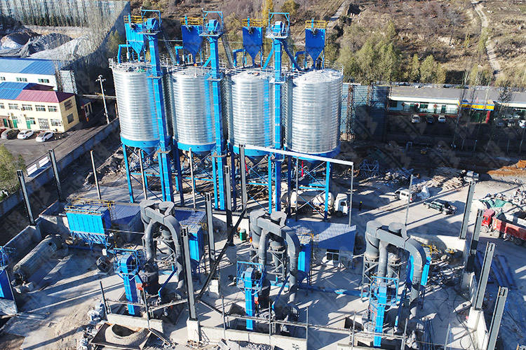 成品礦粉由螺旋輸送機送至斗式提升機,而后進入細長型深倉成品料罐。罐中粉塵氣體經(jīng)過罐頂除塵器收集后將成品存入成品罐,潔凈氣體排放。